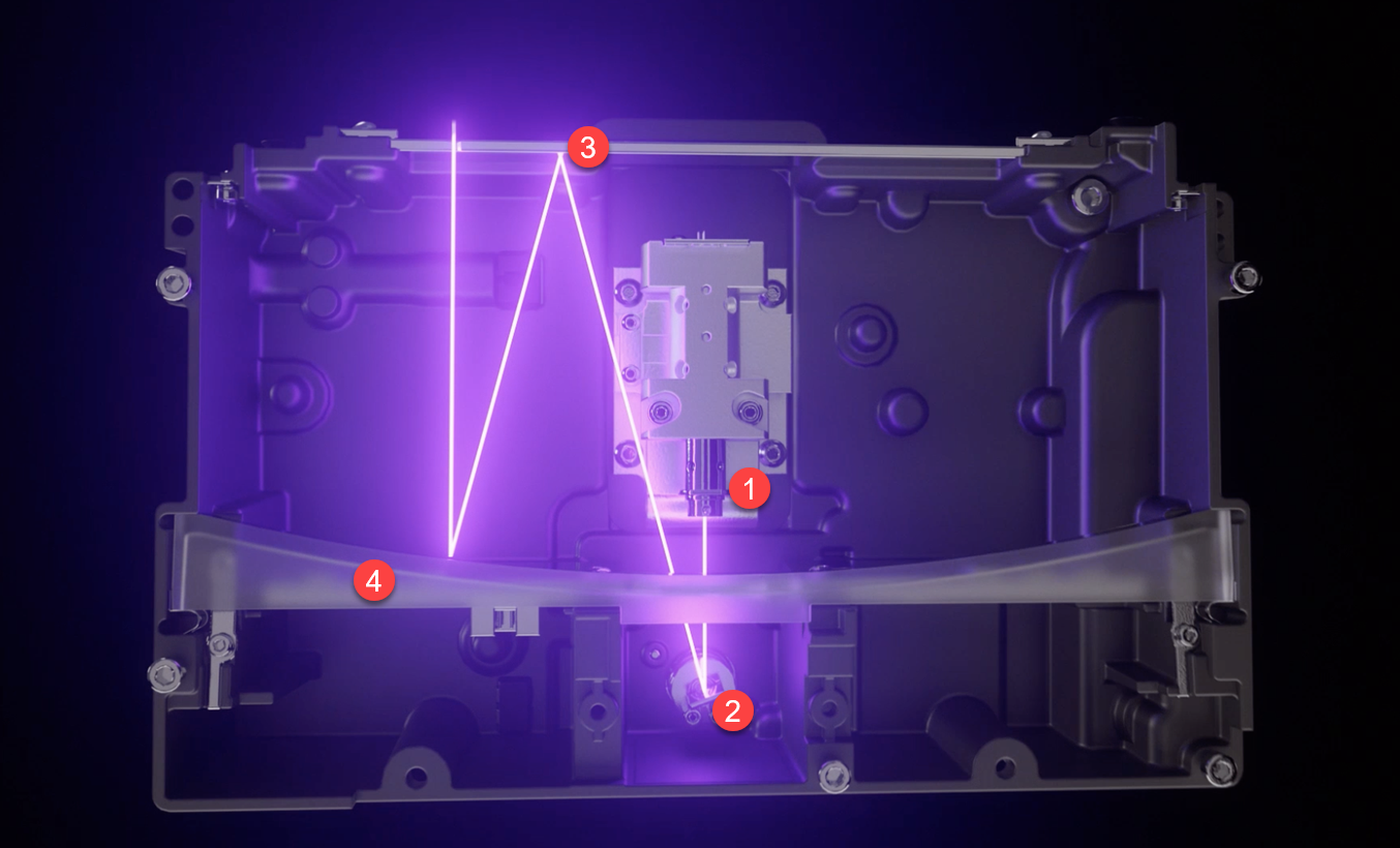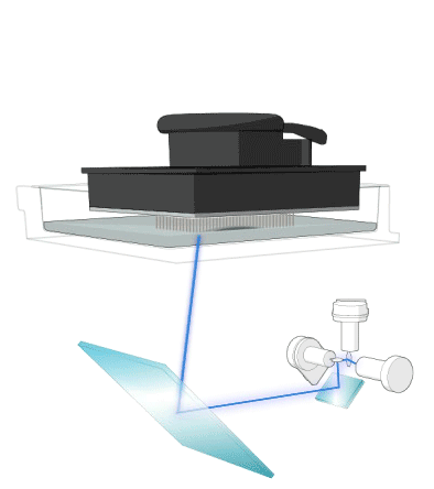 ในส่วนของ LPU นั้นจะถูกผูกติดกับชุดขับเคลื่อน Step Motor ในแนวแกน X ซึ่งพอรวม LPU เข้ากับระบบเคลื่อนที่แบบนี้ ทาง Formlabs เลยตั้งชื่อเทคนิคนี้ว่า Linear illumination ซึ่งเจ้าตัว LPU นั้นจะเคลื่อนที่ และยิงเลเซอร์ออกมาให้สัมพันธ์กับการเคลื่อนที่ของแกน X (เคลื่อนที่ไปทางซ้ายและขวา)
