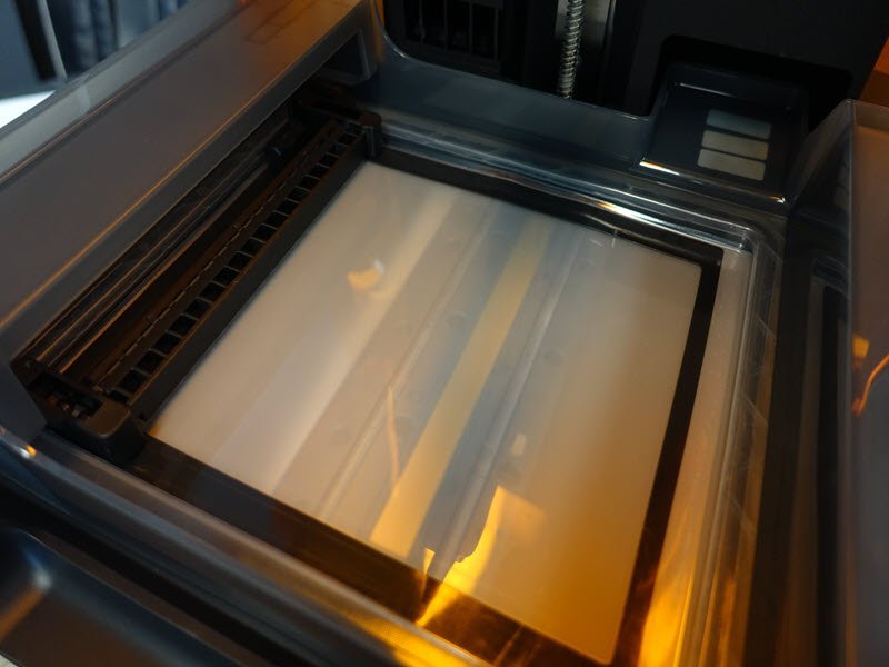 พอจะพิมพ์เลเยอร์ต่อไป ฐานพิมพ์ก็จะขยับขึ้น ทำให้งานหลุดออกจากฟิลม์ ซึ่งตรงนี้ ทาง Formlabs เรียกว่า Low Force เพราะแรงที่ใช้ดีงให้งานหลุดออกมานั้น น้อยมาก เพราะตัวฟิลม์ที่อยู่ในถาด สามารถขยับ ขึ้นลงได้ ทำให้แรงดูดระหว่างตัวงานที่พิมพ์กับกับถาดนั้นน้อย ซึ่งต่างกันกับเครื่องพิมพ์ Form 2 ที่แรงดึงหรือแรงดูดจะเยอะกว่า