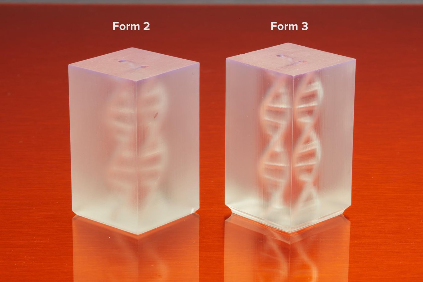 สำหรับข้อดีอีกอย่างของการใช้ระบบการยิงเลเซอร์แบบนี้ ก็คือ ขิ้นงานที่พิมพ์จากเรซิ่นใสจะมีความใสและโปร่งแสงมากขึ้น ไม่ขุ่นเหมือนกับเครื่องรุ่นเก่าอย่าง Form 2 ซึ่งเป็นผลมาจาก ที่เลเซอร์ตั้งฉากกับถาดพิมพ์ตลอดเวลา จุดที่เรซิ่นโดน จะไม่มีการกระเจิงของแสง ทำให้เรซิ่นรอบๆข้างไม่แข็ง ซึ่งทำให้ชิ้นงานที่พิมพ์จากเครื่อง Form 3 จะมีความใสมากขึ้น