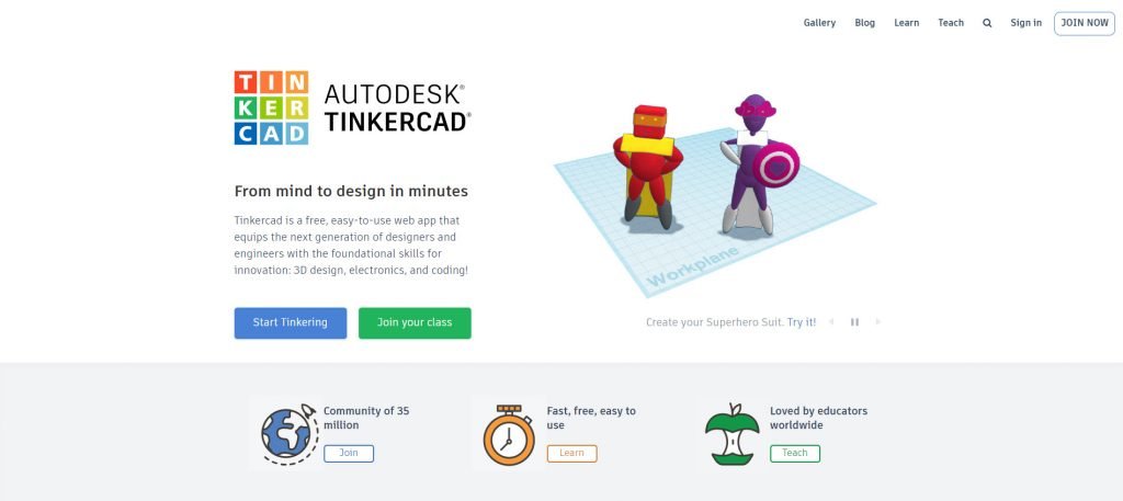 TinkerCAD เป็นโปรแกรมในเครือ Autodesk ที่มีผลิตภัณฑ์ซอฟต์แวร์ออกแบบงาน 3D หลากหลายโปรแกรมเพื่อตอบโจทย์งานแต่ละประเภท ซึ่ง TinkerCAD เป็นโปรแกรมที่เจาะกลุ่มโรงเรียนและสถานศึกษาต่างๆ เค้าจึงออกแบบมาให้ใช้งานง่ายที่สุด คอนเซ็ปต์การขึ้น 3D ง่ายๆ แค่ดึงก้อน A รวมก้อน B ตัดออกด้วยก้อน C ต่อๆกันไปเรื่อยๆจนออกมาเป็นรูปร่างต่างๆ ไม่ว่าจะเป็นข้าวของเครื่องใช้ หรือ คาร์แรกเตอร์ง่ายๆก็ได้ (เดี๋ยวผมจะสาธิตการใช้งานโปรแกรมคร่าวๆให้ดูในหัวข้อถัดไป)
