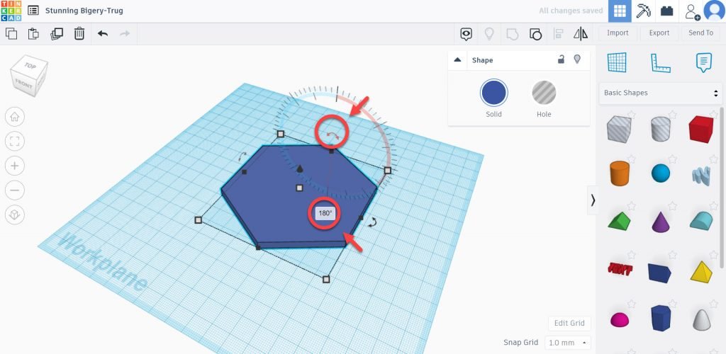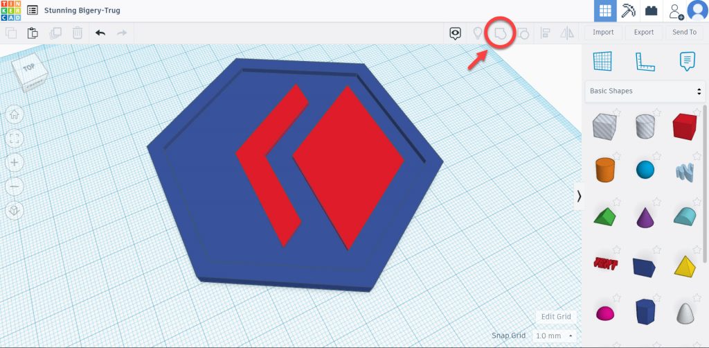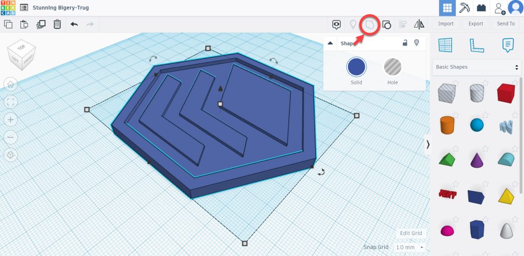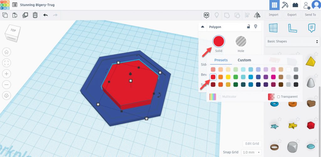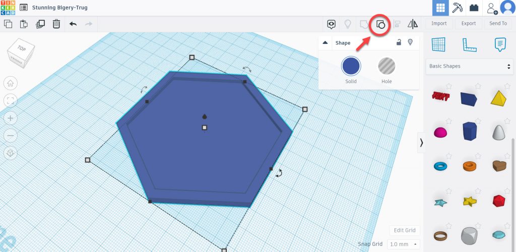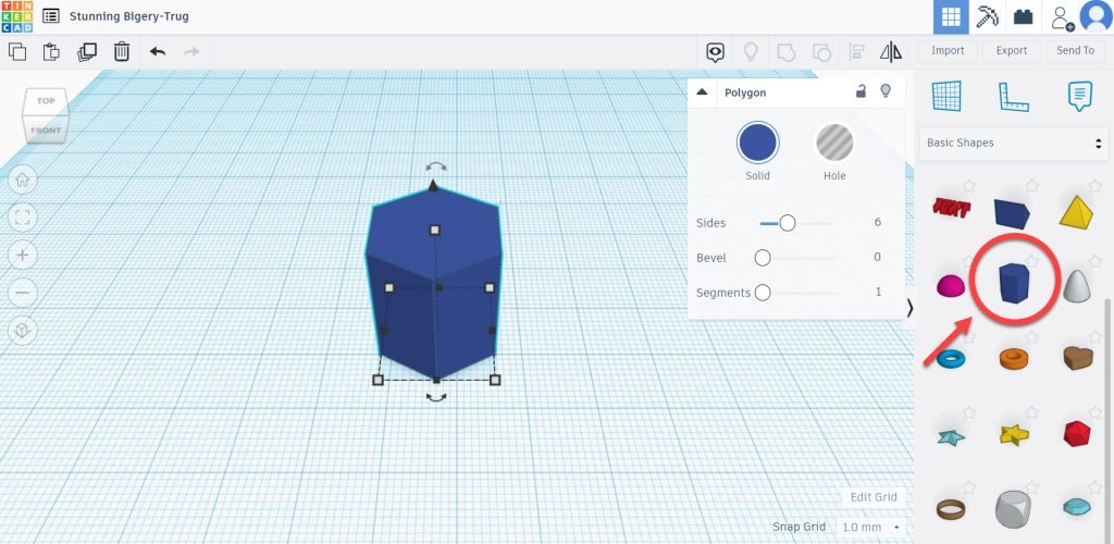 3. โจทย์ของผมคือต้องการภาชนะรองแก้วทรง 6เหลี่ยม ผมก็เลือกรูปทรงตั้งต้นเป็น 6 เหลี่ยม แล้วกดลงวางลงบนพื้นที่ทำงานตรงกลาง