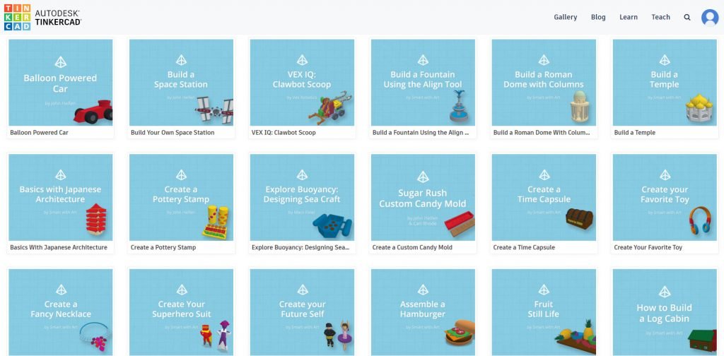 สำหรับใครที่ลองทำตามแล้ว รู้สึกชอบ อยากศึกษาให้มากกว่านี้ ก็แนะนำให้เริ่มจากเว็บของ TinkerCAD ก่อนเลย ไม่ต้องไปที่ไหนไกลเลย อย่างที่เรารู้กันว่า TinkerCAD เค้าออกแบบมาสำหรับมือใหม่ ดังนั้นเว็บเค้าจึงจัดเต็มเนื้อหารวมถึงคอร์สสอน ซึ่งเรียบเรียงเป็นหลักสูตรอย่างดี เป็นขั้นเป็นตอน เริ่มนับตั้งแต่ศูนย์เลย สามารถทำตามแบบเป็นขั้นตอน step-by-step ตามได้เลย