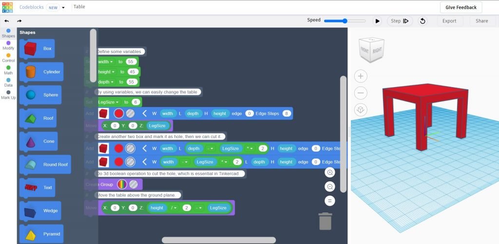 อย่างที่บอกไปตอนต้นว่า TinkerCAD เป็นโปรแกรมสำหรับใช้ในโรงเรียนหรือใช้สอนเด็กๆ รวมไปถึงเหล่านักประดิษฐ์เอาไว้สำหรับสร้างสิ่งของ นอกจากในส่วนของ 3D Design ที่ใช้สำหรับขึ้น 3D แล้ว ยังมีส่วนของ Code Blocks สำหรับเรียนรู้เรื่องขึ้น 3D ผ่านการเขียนโค้ดอีกด้วย ซึ่งเอาไว้ใช้ฝึกตรรกะ วางแผนเขียนแบบ 3D อย่างเป็นระบบ รวมไปถึง Circuits สำหรับเรียนรู้เรื่องการต่อวงจรไฟฟ้าเบื้องต้น ถ้าเรามีโปรเจคทำอุปกรณ์ง่ายๆ เราก็สามารถจบได้ในโปรแกรม TinkerCAD ได้ตัวเดียวเลย