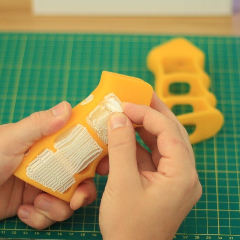 ซึ่งตัว Support ที่สร้างขึ้นมานั้น ก็คือพลาสติกที่ใช้สำหรับพิมพ์งานนั่นเอง ส่วนใหญ่แล้วโปรแกรม Slicer จะมีฟังค์ชั่นในการสร้าง Support ให้อัตโนมัติ โดยที่ผู้ใช้แค่กดเลือกในโปรแกรม Support ที่ถูกสร้างขึ้นมานั้นก็จะถูกดึงทิ้ง เมื่อพิมพ์งานเสร็จ
